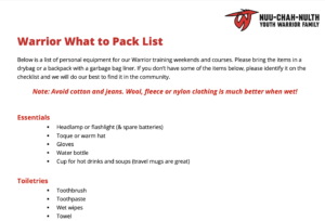 Warrior Program Packing List