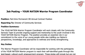Some ideas for writing a program Coordinator job posting from the Nuu-chah-nulth Youth Warrior Family.
